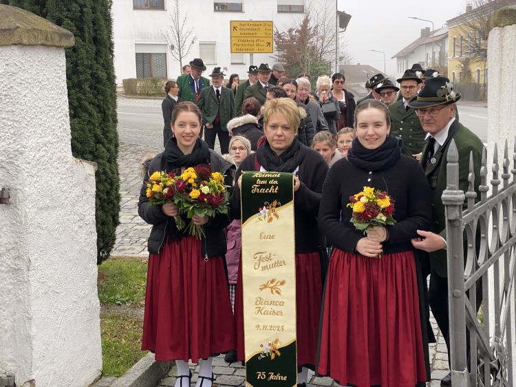 Unser Vereinsjubiläum im November kann kommen: Wir haben eine neue Fest- und Fahnenmutter! Bianca Kaiser wird dieses Amt für das Fest und auch anschließend als Nachfolgerin von Klara Stöckl weiterführen. Beim Festmutterbitten hat sie die Bitte des Vereines erhört und "Ja" gesagt. Vielen Dank an Bianca für die Übernahme dieses Amtes. Ihre Töchter Leni und Vicky werden sie beim Fest als Festdamen begleiten. Kurze Übersicht des Festablaufes - siehe unten bei Termine!